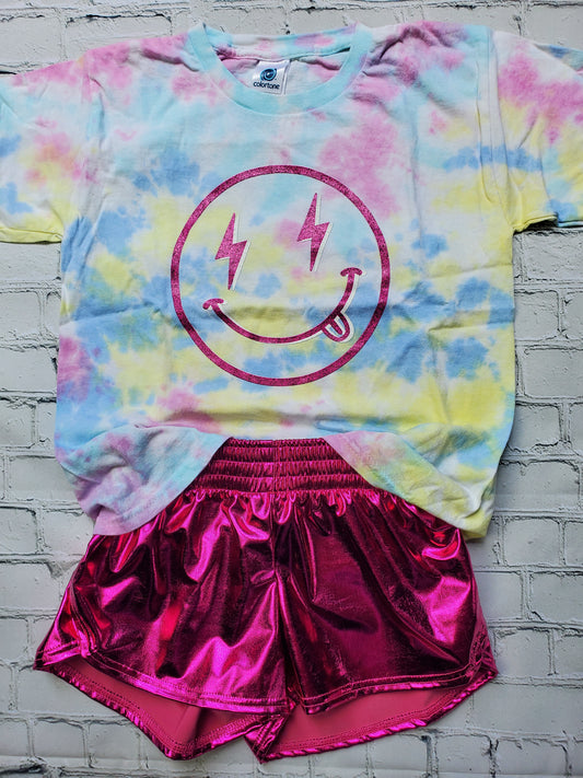 Sold outGlitter Tie-Dye Smiley Tee